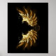 Asas brilhantes e ouros anjos sobre fundo escuro. Asas de ouro.