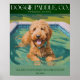 Vintage Advertisement para a Ouro Doodle Natação School. estilo de pintura abstrato.