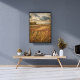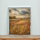 Uma pintura evocativa e impressionista representando um vasto campo de ouros, sementes secas sob um dramático céu nublado. As pinceladas texturizadas criam uma sensação de movimento e profundidade, capturando a atmosfera serena e poderosa de uma paisagem em mudança. À distância, árvores silenciadas e um vislumbre de água completam essa cena tranquila e rústica, fazer-a uma peça perfeita para amantes da natureza e aqueles que buscam um toque de elegância magnética.