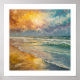 Esta pintura a óleo impressionante captura a beleza impressionante de um pôr do sol ouro numa praia arenosa. As tons vibrantes de laranja, amarelo e roxo pintam o céu, enquanto as ondas suaves do oceano subem na costa. Esta peça certamente adiciona um toque de tranquilidade e serenidade a qualquer casa ou escritório.