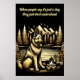 Um German shepherd de ouro se senta ao lado de uma fogueira em um cenário de floresta serena. A lua brilha intensamente no céu noturno, e o lobo escurece no lago calmo. A cena é reproduzida num estilo detalhado e de arte, evocando um senso de paz e tranquilidade.