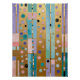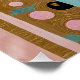 Este trabalho de arte é uma exploração vibrante de forma e cor. Painéis verticais de ouro, teal e lavanda macia misturados são enfeitados com uma cascata de círculos e formas geométricas em uma paleta diversificada de rosa, turquesa e violeta. A peça combina, com mestria, ornamentados, elementos decorativos com linhas modernas e limpas, criando um sentido de homenagem histórica e de expressão contemporânea. A composição é uma rica tapeçaria de textura e padrão, convidando o espectador a se perder em seus intrincados detalhes.