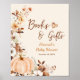 Celebre o seu chá de bebê com tema outonal com o nosso encantador Sinal de Livros e Presentes Pequena Abóbora de Outono — uma combinação perfeita de elegância sazonal e charme rústico. Com uma abóbora em aquarela rodeada por flores terracota, este sinal é ao mesmo tempo atraente e emocionante. As cores suaves do outono adicionam um toque acolhedor e natural ao seu evento, guiando os convidados a deixar seus cartões e presentes com estilo. Ideal para um chá de bebê da pequena abóbora, este sinal complementa a sua decoração de outono com graça, desde temas inspirados em casas de fazenda até boho-chic. Exiba-o num cavalete, emoldure-o ou pendure-o como parte de uma mesa de boas-vindas.