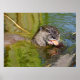 Aproximação de lona pequena (Aonyx cinerea) comendo camarão na água