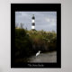 Um grande poster com um farol com um Egret em primeiro plano.