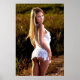 beautiful blonde model in a field, late afternoon sunlight