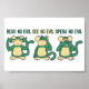 3 Macacos Sábios - Não Ouçam Mau, Não Vejam Mau, Não Falem Mau. Com três verdes bonitos com gráficos de macaco chimpanzé azul e amarelo / bege.