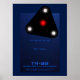 A concepção de um artista simplificado de um artesanato de triângulo negro e de um campo estelar além dele, projetado para se parecer com um anúncio de um carro de luxo. Texto no poster: "0 a 60k em .001 s. Não pisque. TR-3B: Deixa-os todos na poeira estelar." Segundo a Wikipedia: "Os triângulos negros são uma classe de objetos voadores não identificados, ou OVNIs, com certas características comuns que foram observadas durante os séculos de 20 e 21ruas. Os relatos da mídia sobre triângulos negros vieram originalmente dos Estados Unidos e do Reino Unido. A aeronave pode estar relacionada com o rumor do programa de desenvolvimento de aeronaves USAF Aurora. "Os relatos geralmente descrevem essa classe de OVNIs como objetos grandes, silenciosos, triangulares pretos pairando ou vagarosamente cruzando em baixas altitudes sobre cidades e autoestradas. As velas ocorrem normalmente à noite. Esses objetos são frequentemente descritos como tendo luzes coloridas pulsantes que aparecem em cada canto do triângulo."