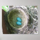 Fotografia dos ovos de dois pinos azuis no ninho.