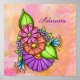 Decorre o seu quarto ou qualquer espaço pessoal que deseje com este fabuloso Poster de conjunto de flores coloridas. Colorful Doodle Flower Bundle é uma encantadora coleção de três grandes flores em rosa, coral e roxo, pregadas uma em cima da outra cercada por pequenas flores coloridas cor margaridas e folhas verdes. Em cada lado do pacote encontram-se pétalas teais rodeadas por pontos amarelos e brancos acentuados. O design geral é esboçado em várias linhas com esboços para dar ao design geral um efeito mais desenhado à mão. O feixe de flores está sobre o fundo de colagem compilado de cores em pinks, amarelos e corais. Dentro das placas de cor estão vários padrões e formas. Você pode personalizar esta imagem adicionando seu nome ou qualquer texto que você escolher.