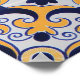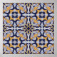 Design de padrão-azulejo português com decoração floral azul, branca e amarela