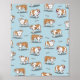 Um padrão fofo de Buldogue Inglês. Este desenho fofo de Buldogue Britânico está em um fundo azul com ossos de cachorro. Os cães-touro têm expressões bonitinhas em seus rostos distintos e enrugados. Um padrão para quem ama cachorros.