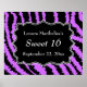 Um padrão de impressão roxo, preto e branco da moda Doce 16 design. Este legal design de 16 anos tem um impressão de padrão de zebra preto e roxo. Há um texto personalizado branco para ser personalizado dentro a forma de na moda preto elegante. Projetado para uma festa de aniversário Doce 16.