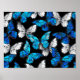 Poster Padrão Escuro Sem Costura com Borboletas Azuis Mor