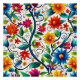 Uma renderização digital de um padrão floral colorido, uniforme e repetitivo.