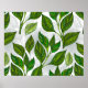 Um padrão sem costura de folhas de chá verde padronizadas e brotos sobre um fundo leve. Design de chá.
