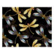 Padrão sem costura com ouro, joias, libélulas brilhantes com asas brilhantes e detalhadas sobre fundo preto. Dourada libélula.