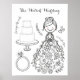 Uma Página para Colorir Atividade de Casamento Ilustrada original para manter as crianças entretidas. Pinte o vestido e projete o bolo! Personalizado com seu próprio título.