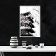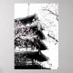 Poster Pagoda Japonesa Preta/Branca com Blossomas de Cere