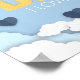Melhor Pai Texto amarelo, corações voadores azuis, nuvens brancas no céu, suprimentos de festas Dias de os pais