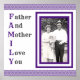 Mostre o amor dos seus pais em roxo e branco. A família é um acrônimo da frase, Pai e Mãe Eu Te Amo. Adicione sua própria foto dos seus pais.