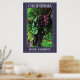 Decoração do muro verde com um tema da California Wine com uma imagem colorida de um vinhedo.