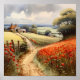Linda imagem de cor de água de papoilas vermelhas em uma paisagem rural, arte perfeita para felicitar qualquer casa.