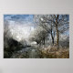 Belo azul claro, musgo e verde-oliva, branco, cinza, castanho e cor-de-água bege, pintando árvores e rios durante a estação de inverno. Design para o amante das estações, da natureza, do inverno, das florestas e das paisagens sazonais. Um artigo de decoração elegante e elegante para aqueles que adoram decorar o seu mestre ou quarto de criança, sala de estar ou de família, sala de mulher ou caverna de homem, dormitório, condomínio, estúdio ou apartamento, cabana de madeira, casa de campo, campo de caça, casa de férias de rio ou lago ou escritório.