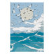 Vintage Seascape japonês com gaivotas voando sobre o mar.