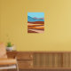 Poster numa paisagem moderna e semicanal do sudoeste em tons de terracota, laranja feroz e turquesa, com um céu aqua