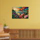 Poster Paisagem Floral Surreal: Abstrato River e Tower