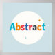 Diseño limpio y llamativo con la palabra ABSTRACT en colores vibrantes sobre un círculo blanco, rodeado de un suave fondo azul celeste. Perfecto para amantes del arte moderno y minimalista.