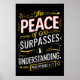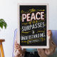Um poster preto com uma poderosa citação bíblia em letras negrito, criando um contraste impressionante contra o tecido escuro. A paz de Deus ultrapassa a compreensão.