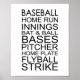 Este trabalho de arte de texto de beisebol é perfeito para decorar uma casa daqueles que adoram jogar ou assistir baseball. Este design apresenta as frases que você ouvirá durante um jogo, em uma simples fonte preta. Este é um presente de excelente para alguém com um quarto de baseball ou caverna de homem.