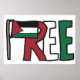 A bandeira palestina e as letras "REE" compõem uma imagem de protesto da "Palestina Livre". Uma declaração de intenção ou um uivô de raiva - imagem colorida e eficaz de sloganeering.
