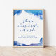 Símbolo de casamento impresso com uma borda azul-abstrato de aquarela para coordenar com a nossa coleção de Ocultos Sapphire. O texto diz "Escolha um assento, não um lado. Somos todos família assim que o nó estiver amarrado!" Use as ferramentas de design para editar o texto, as fontes e as cores ou carregar suas próprias fotos para criar um único sinal de boas-vindas de casamento.