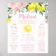 Bem-vindos aos convidados do seu partido com um sinal personalizado adorável. Enquadre o sinal e exiba-o numa mesa perto da entrada ou monte a espuma poster e mostre-a fora em um calcanhar. Este design bonitinho apresenta limões coloridos de aquarelas, flores cor-de-rosa e confete de folha de ouro falso.