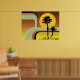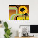 Poster Palmeiras Tropicais Retro Beach Sunset Stripes Mod