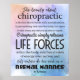 A citação do Dr. B.J. Palmer: "A beleza da quiroprática é o fato de que ela funciona com meios naturais. Não coloca nada de novo no corpo, nem retira qualquer glândula ou órgão natural. A quiroprática simplesmente libera forças de vida dentro do corpo, libera riachos livres de energia sobre os nervos, e permite que a natureza faça seu trabalho de maneira normal." numa variedade de tipografia/fontes sobre fundo de aquarela.