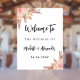 Um fundo branco decorado com grama pampas e florais cor-de-rosa pincelados, rosas. Personalize e adicione seus nomes e a data. Letras pretas coloridas.