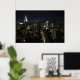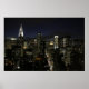 A paisagem urbana de Manhattan à noite, mostrando arranha-céus, edifício Chrysler e dramático céu escuro.