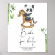 Podemos esperar chá de fraldas convite. Urso panda, de cor aquática, bonito, no cavalo de brinquedo e no bambu. Itens correspondentes disponíveis.