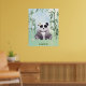 Ilustração de um urso panda preto e branco sentado perto de bambu aquarela verde. É um excelente design para amantes de pandas ou fãs de animais super fofos. As cores são pastéis e parecem uma pintura aquarela. Esta impressão vai alegrar qualquer quarto ou sala de brincar de crianças. Pode ser personalizado com o nome da sua criança.