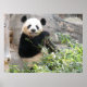 Foto maravilhosa da vida selvagem de um Panda relaxando enquanto ele mastiga um caule de bambu.