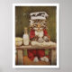 Gatinho bonito em roupa de gingham e vestindo o chapéu de um chef ajoelha pão. Fotografia de truques de safra c1914.