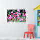 Foto de papoilas coloridas vermelhas e cor-de-rosa num jardim de flores silvestres.