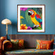 Poster Papagaio Pássaro Tropical Palmeiras Florais azuis