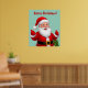 Um alegre Papai Noel cercado por decorações festivas, árvores de Natal e presentes embrulhados, celebrando a temporada de festas com felicidade e calor, trazendo alegria mágica para crianças e famílias igualmente.