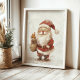 Esta encantadora obra de arte apresenta um Papai Noel alegre, vestido com seu traje vermelho tradicional, segurando um saco cheio de brinquedos. A expressão alegre do Papai Noel e suas bochechas rosadas trazem uma sensação de calor e espírito natalino. O fundo suave e texturizado da pintura adiciona à atmosfera festiva e caprichosa, tornando-a perfeita para decoração de Natal.