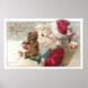 O Melhor Natal Deseja que o Pai Natal fumar um cachimbo de prata e segurar um ursinho de pelúcia numa tempestade de neve. Nas costas dele está uma cesta contendo uma boneca, um cavalo de brinquedo e um tambor em um cartão postal de natais vintages de 1913.